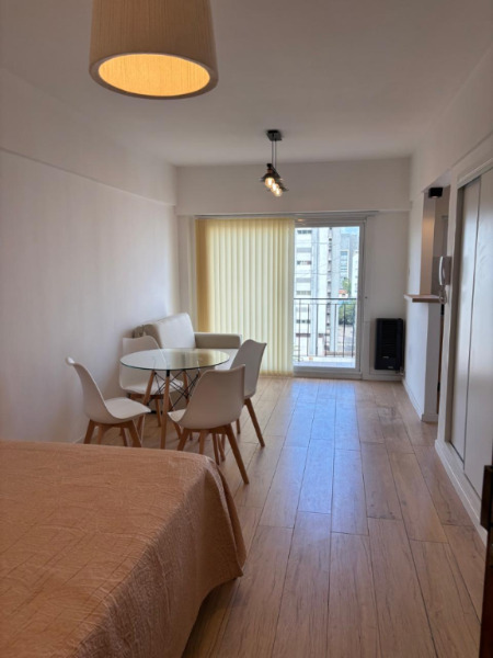 UN AMBIENTE A LA CALLE CON BALCÓN SALIENTE RECICLADO. Cómodo monoambiente apaisado con salida al balcón saliente. Cocina separada completamente equipada y reciclada. Baño con ducha reciclado a nuevo. Pisos de parquet plastificado. Calefactor tiro balanceado. Placard. Muebles y artefactos a estrenar. Decorado. Excelente estado.