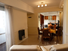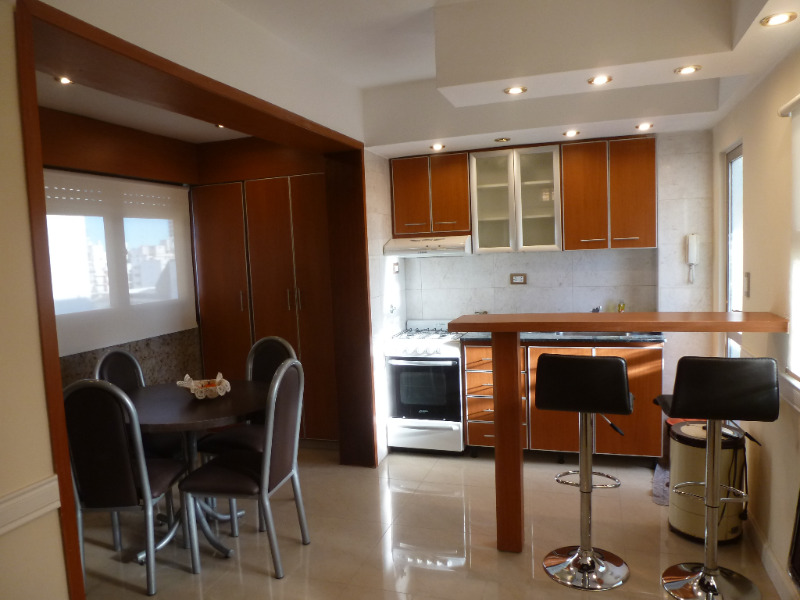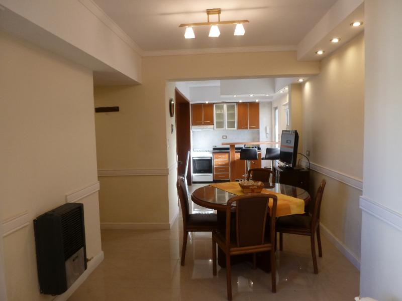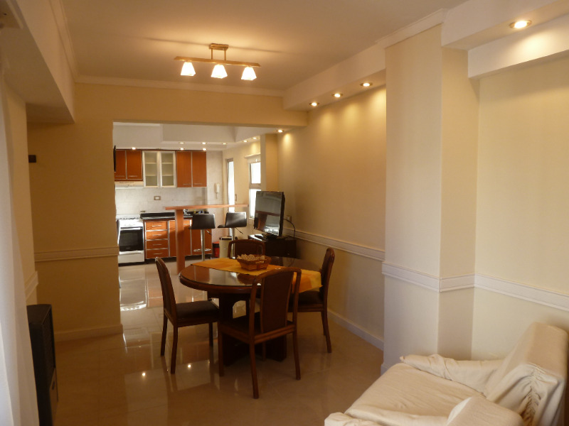 DOS AMBIENTES MUY AMPLIOS RECICLADO CON COCHERA FIJA. Amplio living comedor contrafrente muy luminoso con salida a un BALCÓN SALIENTE. Dormitorio muy luminoso con placard. Cocina integrada al estar con barra desayunadora y salida a una cómoda TERRAZA. Baño completo reciclado. Pisos de porcelanato. Calefactores tiro balanceado en ambos ambientes. Amoblado. Equipado. Totalmente reciclado. Amplias medidas. COCHERA FIJA EN EL MISMO EDIFICIO. Excelente estado.