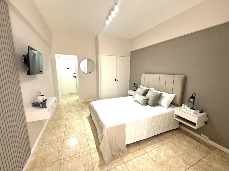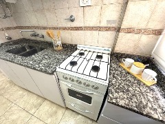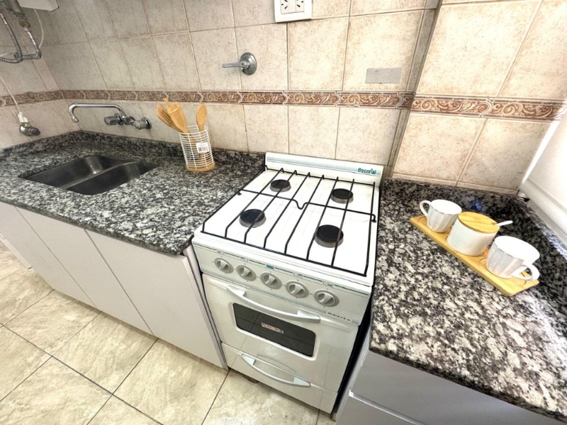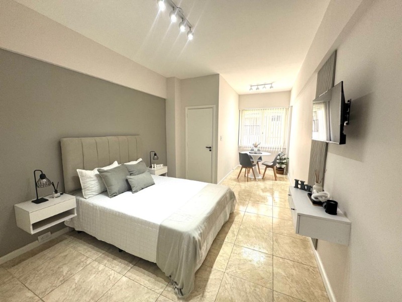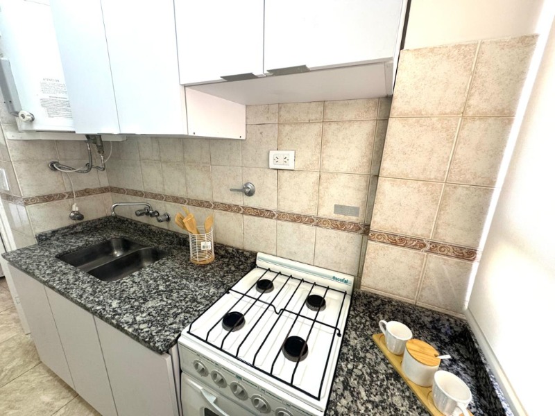UN AMBIENTE LATERAL MUY LUMINOSO. Ambiente desplazado muy cómodo con pisos cerámicos. Cocina separada con amoblamiento a medida, revestimientos cerámicos. Baño completo revestido en cerámicos. Amoblado. Decorado. Muy buen estado.