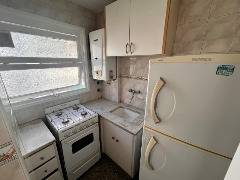 UN AMBIENTE A LA CALLE CON BALCÓN SALIENTE. Ambiente amplio externo con salida al balcón saliente. Cocina separada al frente revestida en cerámicos. Baño completo revestido en cerámicos. Placard. Recién pintado. MUY BUEN ESTADO.