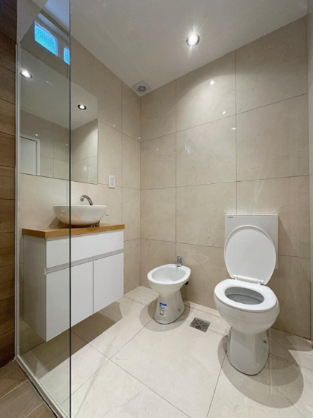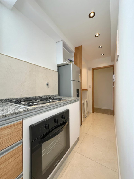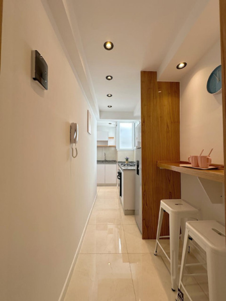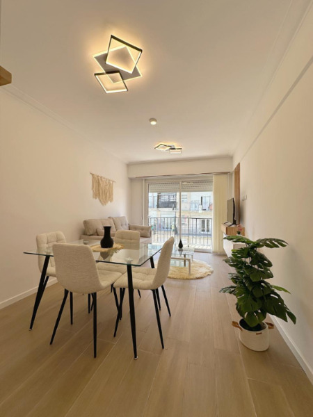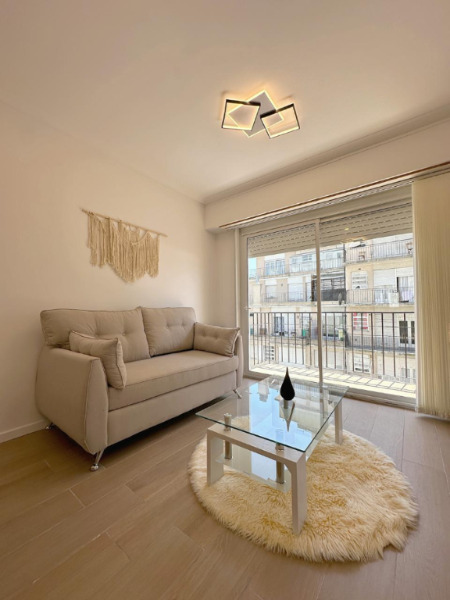 DOS AMBIENTES A LA CALLE COMPLETAMENTE RECICLADO A NUEVO. Living comedor amplio, a la calle con salida al balcón saliente en vereda de sol. Dormitorio al contrafrente luminoso con placard a medida. Cocina separada con una pequeña barra con ventilación natural. Lavarropas. Baño completo con ducha. Calefacción por tiro balanceado. Muebles y artefactos a estrenar. Decorado. Reciclado. EXCELENTE ESTADO.