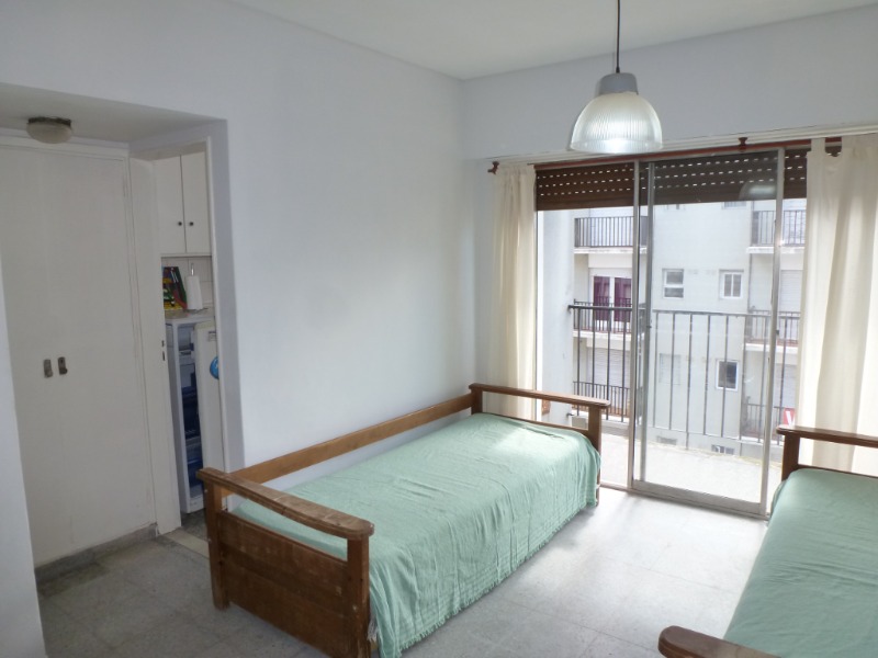 UN AMBIENTE EXTERNO CON BALCÓN SALIENTE. Cómodo ambiente son salida al balcón saliente en vereda de sol. Cocina separada con ventana a la calle. Baño completo reciclado. Balcón saliente con vista panorámica. Placard. Amoblado. Muy bien ubicado. Buen estado.