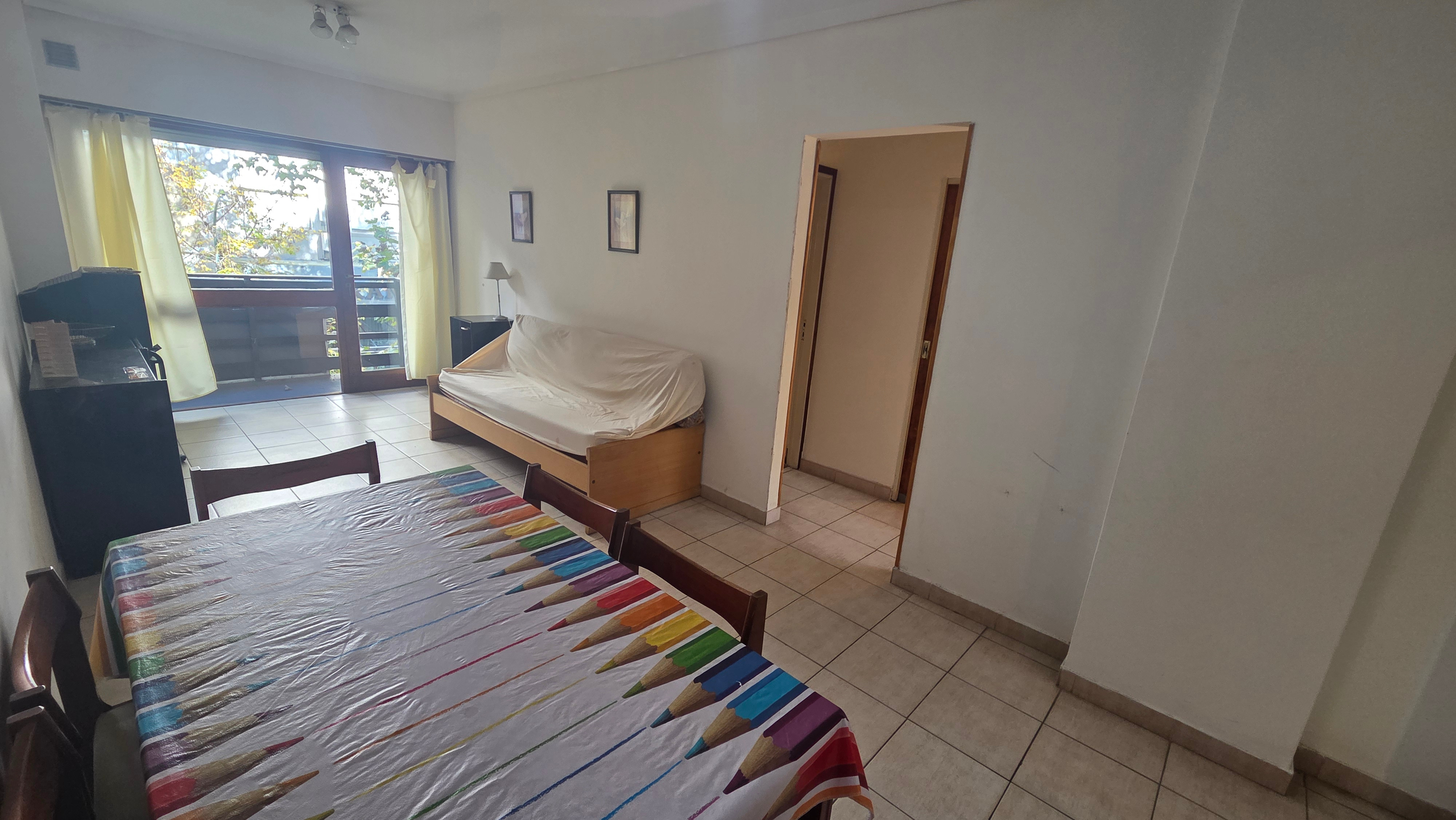 UN AMBIENTE EXTERNO CON BALCÓN SALIENTE. Cómodo ambiente son salida al balcón saliente en vereda de sol. Cocina separada con ventana a la calle. Baño completo reciclado. Balcón saliente con vista panorámica. Placard. Amoblado. Muy bien ubicado. Buen estado.