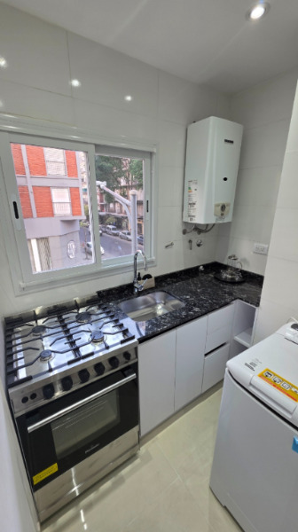 DOS AMBIENTES TODO A LA CALLE RECICLADO A NUEVO. Living comedor muy cómodo con ventana a la calle, calefactor tiro balanceado. Dormitorio con ventana a la calle, placard y piso de parquet plastificado. Cocina separada a la calle, totalmente equipada, reciclada. Lavarropas. Baño completo reciclado a nuevo. Vereda de sol. Aberturas con DVH. Muebles a estrenar. Decorado. Completamente reciclado. EXCELENTE ESTADO.